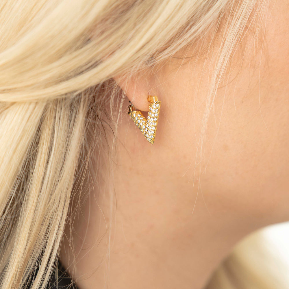 The Victoria Volt Hinge Earring is designer-inspired with 18K Gold Plated with Cubic Zirconia Crystals!