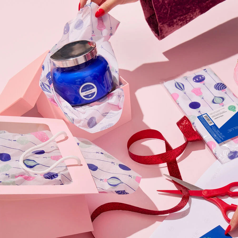 Take your gifts to the next level with Capri Blue's Volcano Scented Tissue Paper! Enhanced by touch, notes of tropical fruits and sugared citrus will add an air of iconic to that already perfect gift!