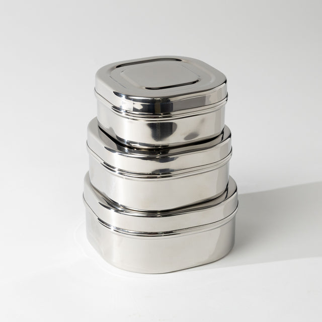 Squared Stainless Steel Containers Set is backordered and will ship as soon as it is back in stock.