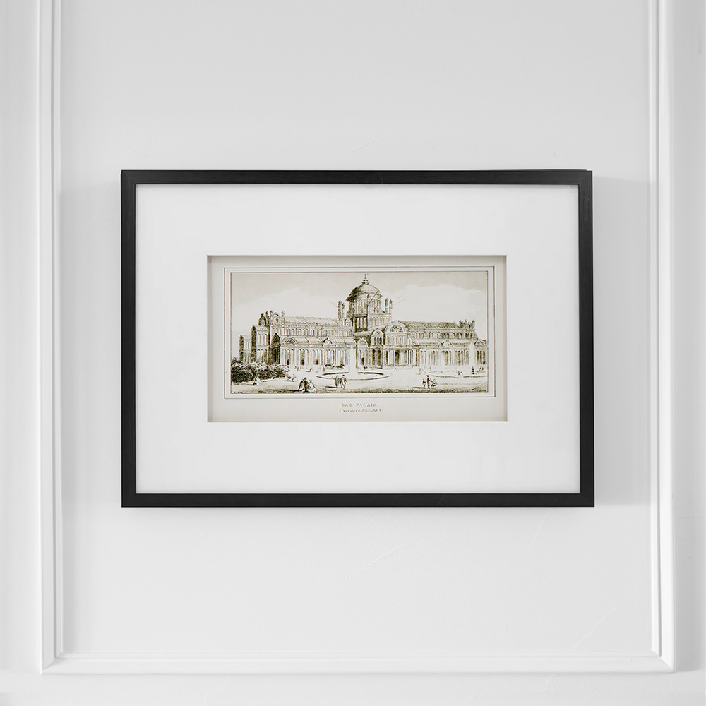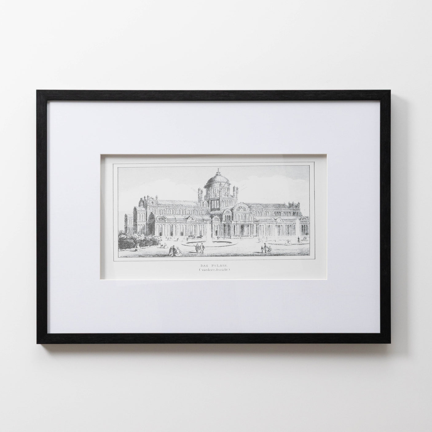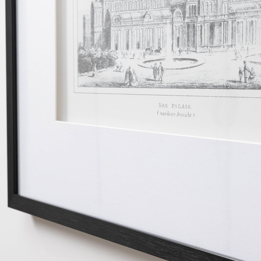 Architectural Landmark Art Print of Das Palais in a White Mat and Sleek Black Frame.